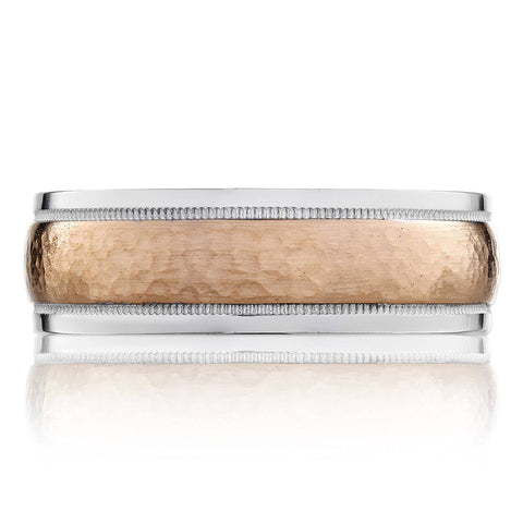 For the Tacori Man in your life who loves to show off his unique style! This two-tone band with a hammered finish and milgrain details will allow your man's style to shine from every angle.