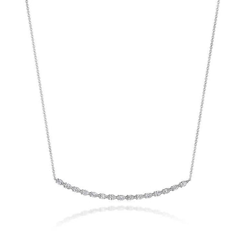 A delicate string of pear cut diamonds hangs from a chain of 18k White Gold. The silhouette of each stone is embellished with milgrain-accented TACORI Crescents.