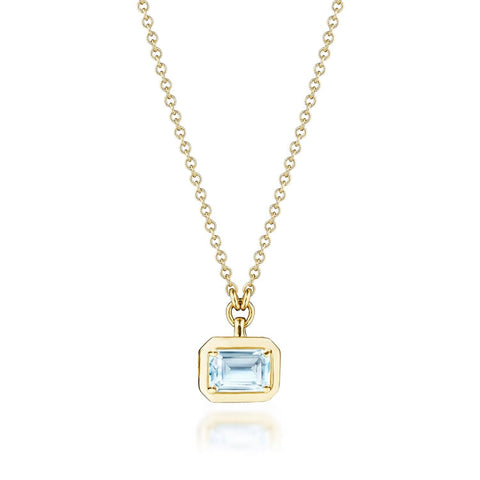 A bezel pendant of captivating depths. The high polish frame enthralls the Sky Blue Topaz center. On the reverse, TACORI Crescent detailing and pinpoint mined diamonds add dimension.