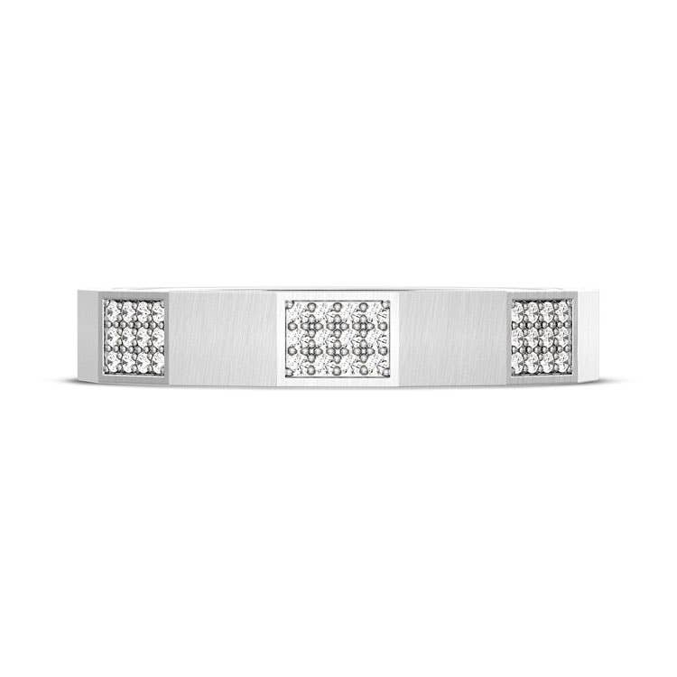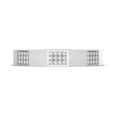 Facets of the satin-finish band alternate with embellishments of hand-set pave diamonds for a textured display. The inner face is decorated with a single TACORI Crescent and hand-hewn milgrain. Rings are available in sizes 4-12.