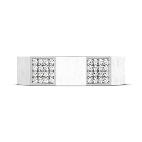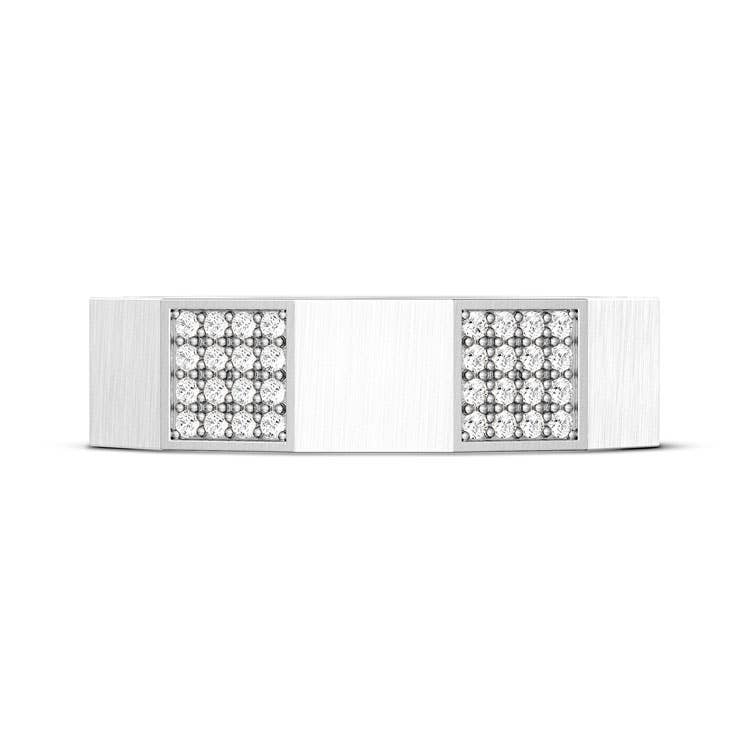 Facets of the satin-finish band alternate with embellishments of hand-set pave diamonds for a textured display. The inner face is decorated with a single TACORI Crescent and hand-hewn milgrain. Rings are available in sizes 4-12.