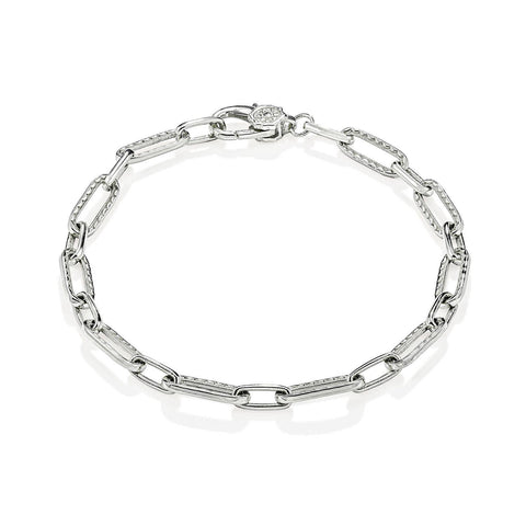 An innovative single-cast, no solder chain of 18kt white gold links are decorated with ellipse-shaped patterns of brilliant round diamonds that form the iconic TACORI crescent. This bracelet is timeless, elegant, and showcases TACORI's unmatched artisanry.