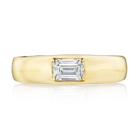 Solid 18k gold is expertly crafted into a sleek, domed ring that enthralls a lab grown diamond center. The high polish finish lends a striking and alluring contrast to the bezel-inspired piece, while a hidden TACORI Crescent adds dimension.