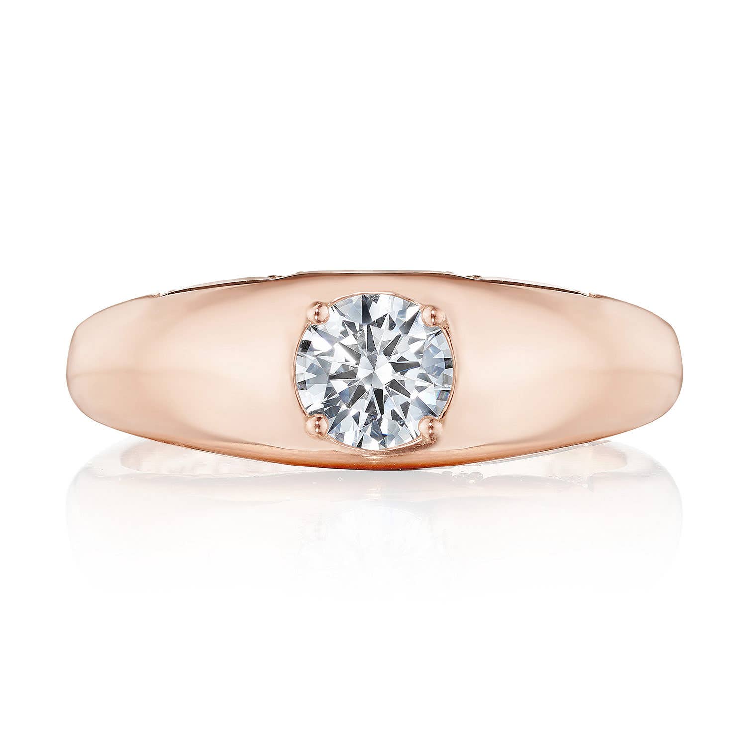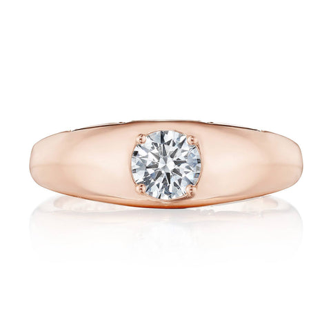Solid 18k gold is expertly crafted into a sleek, domed ring that enthralls a lab grown diamond center. The high polish finish lends a striking and alluring contrast to the bezel-inspired piece, while a hidden TACORI Crescent adds dimension.