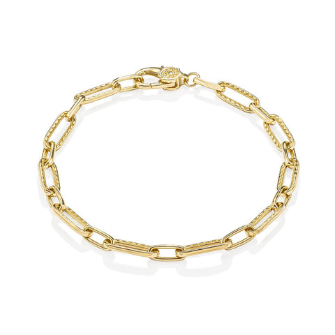 An innovative single-cast, no solder chain of 18kt yellow gold links are decorated with ellipse-shaped patterns of brilliant round diamonds that form the iconic TACORI crescent. This bracelet is timeless, elegant, and showcases TACORI's unmatched artisanry.