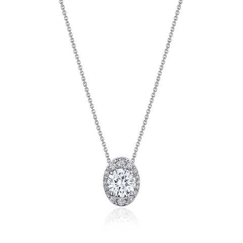 This stunning vertical oval bloom diamond necklace is sure to make a statement. A flourish of diamond spotlight enhancers illuminates the center with clarifying depth and dimension.