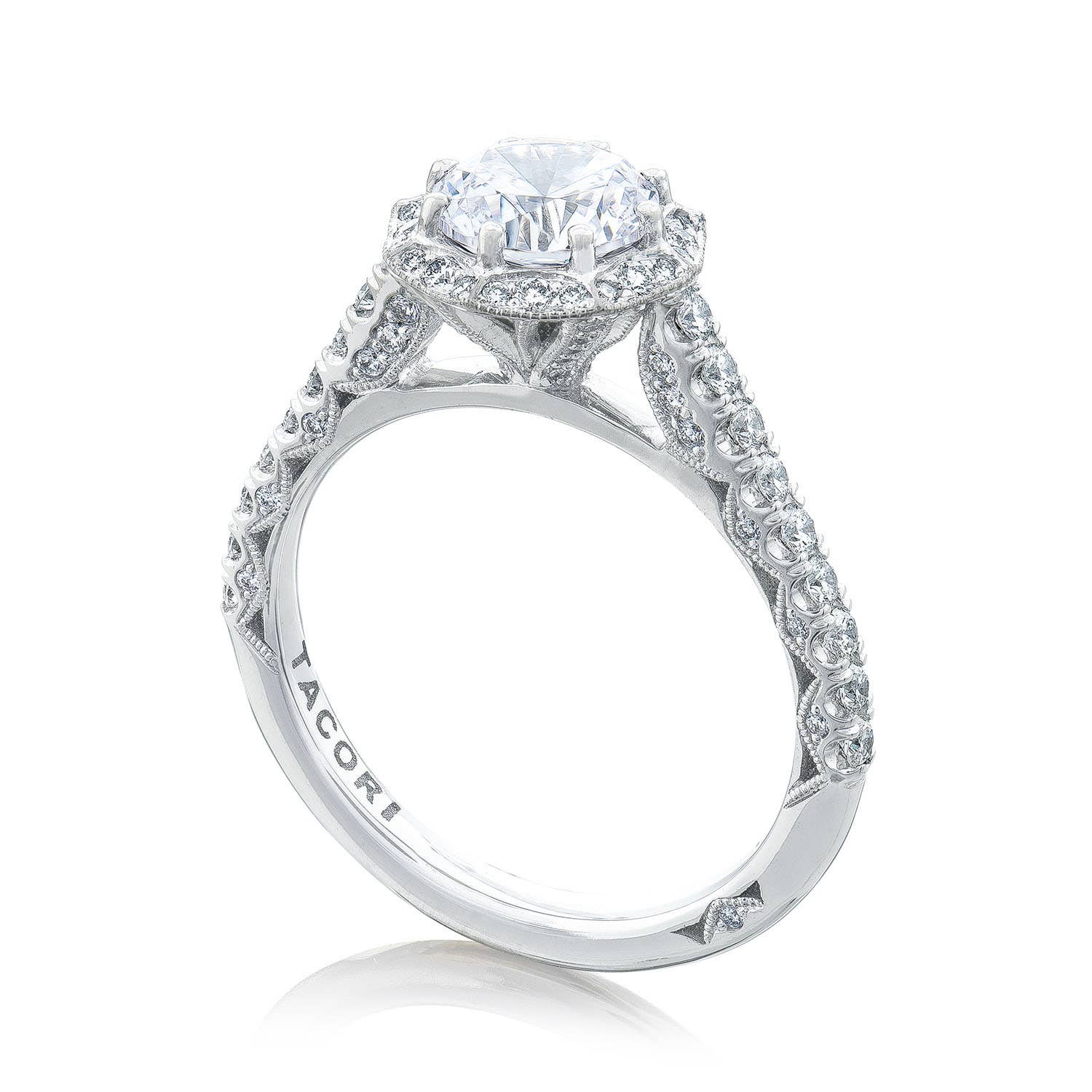 PAVE BLOOM 1/2WAY SOLID BOTTOM W/.54TW RBC DIAS 6.5MM RD CZ CTR SEMI MTG 18KT WG SZ 6.5 PRONGE SET BY TACORI ITEM #HT2555 RD6.5W #347088