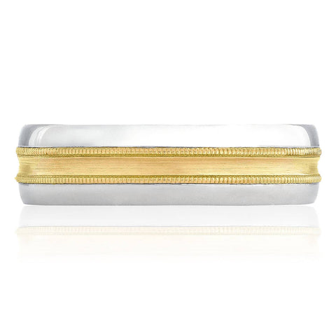 Let the Tacori Man in your life celebrate color. The 6mm white gold band is decorated with a yellow gold heritage stripe with milgrain detailing for a hint of color and timeless style.