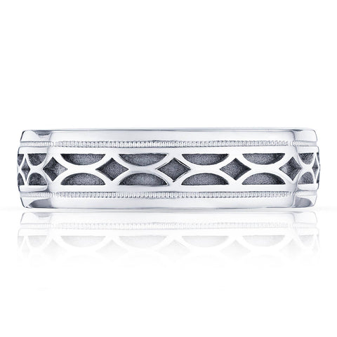 Say hello to the angular variation of a bestselling favorite - the Formula One band. Features a truly one-of-a-kind squared-off vented exterior. Signature Tacori crescents line the profile of the ring to perfectly match any Tacori engagement ring.