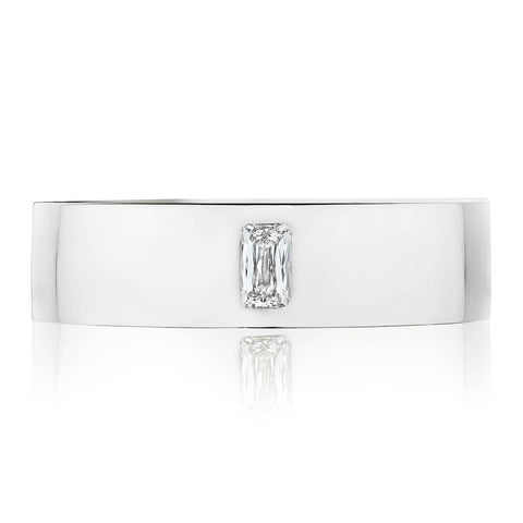 A high polish exterior is accented with a Tacori-exclusive triple-cut diamond, bezel-set into the flat-top band. This simple but elegant design is complemented by full sculpted crescent detail and a soft-comfort fit interior.