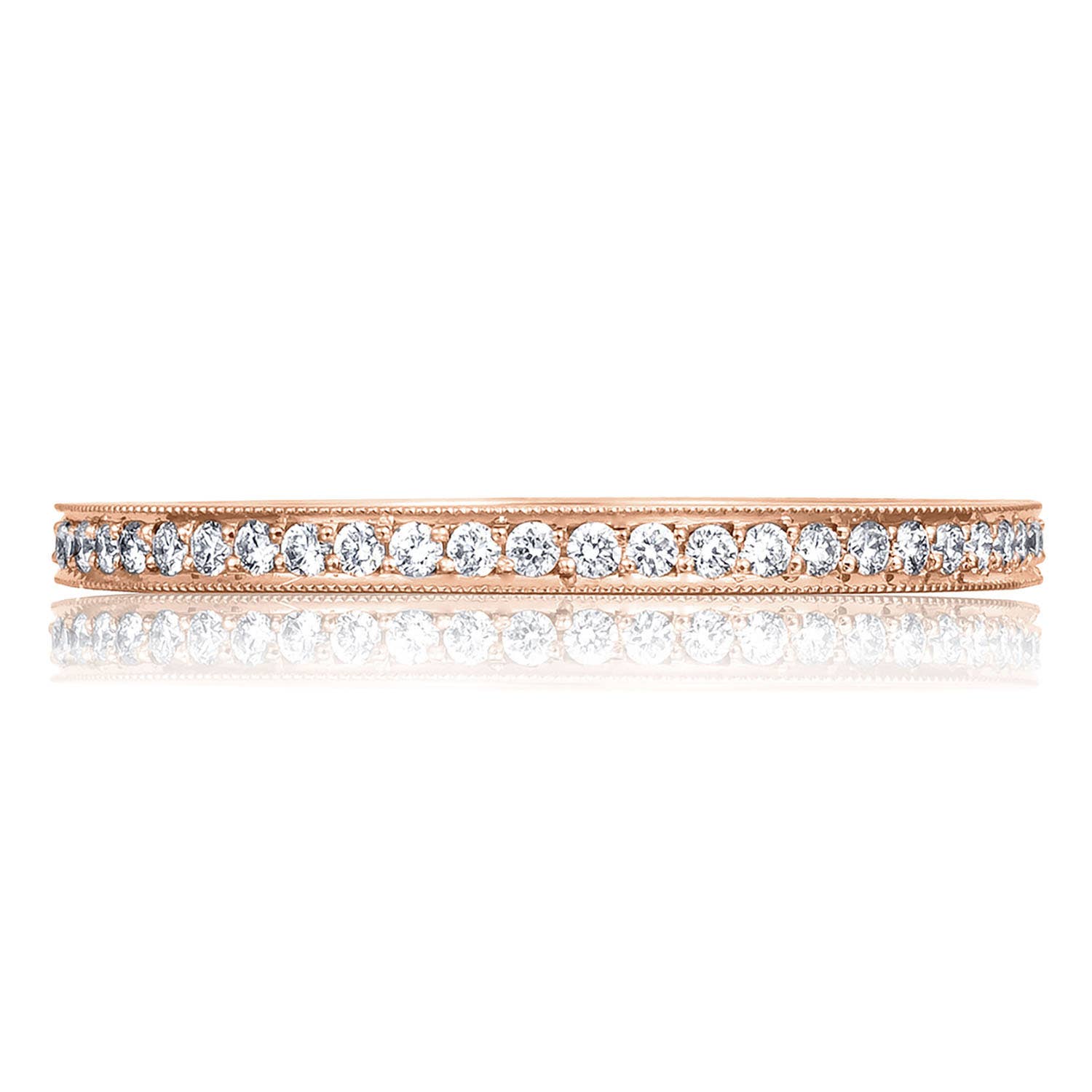 A delicate string of pavé set diamonds that you'll never want to take off. Perfectly paired with your Tacori engagement ring or worn by itself, this Ladies band is truly irresistible.