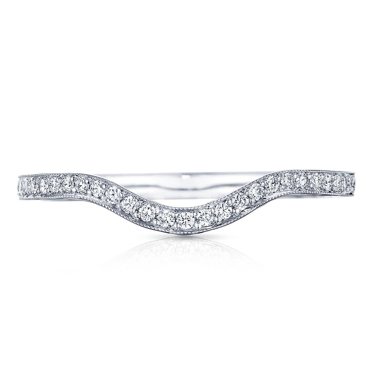 Wave hello to our newest wedding band shape, sure to fit the Tacori Bride who's looking for a unique and unconventional twist to the traditional wedding band. Worn delicately underneath your engagement ring or on top for dramatic effect, this curved ladies band truly bends the rule in wedding style.