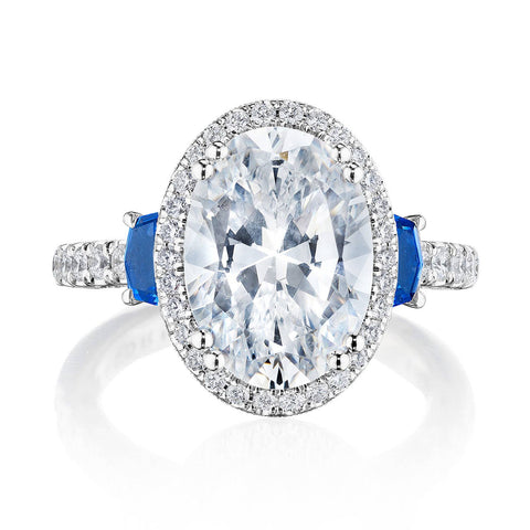 Dantela | Oval 3-Stone Engagement Ring with Blue Sapphire 269322OV125X9BS