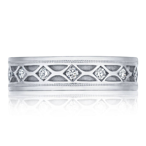 For the Tacori man in your life looking to express his unique style, this brand new band speaks for itself. With a truly one-of-a-kind vented exterior and a brilliant diamond in each crescent, this band is as classic and timeless as your love. Signature Tacori crescents line the profile of the ring to perfectly match any Tacori engagement ring.