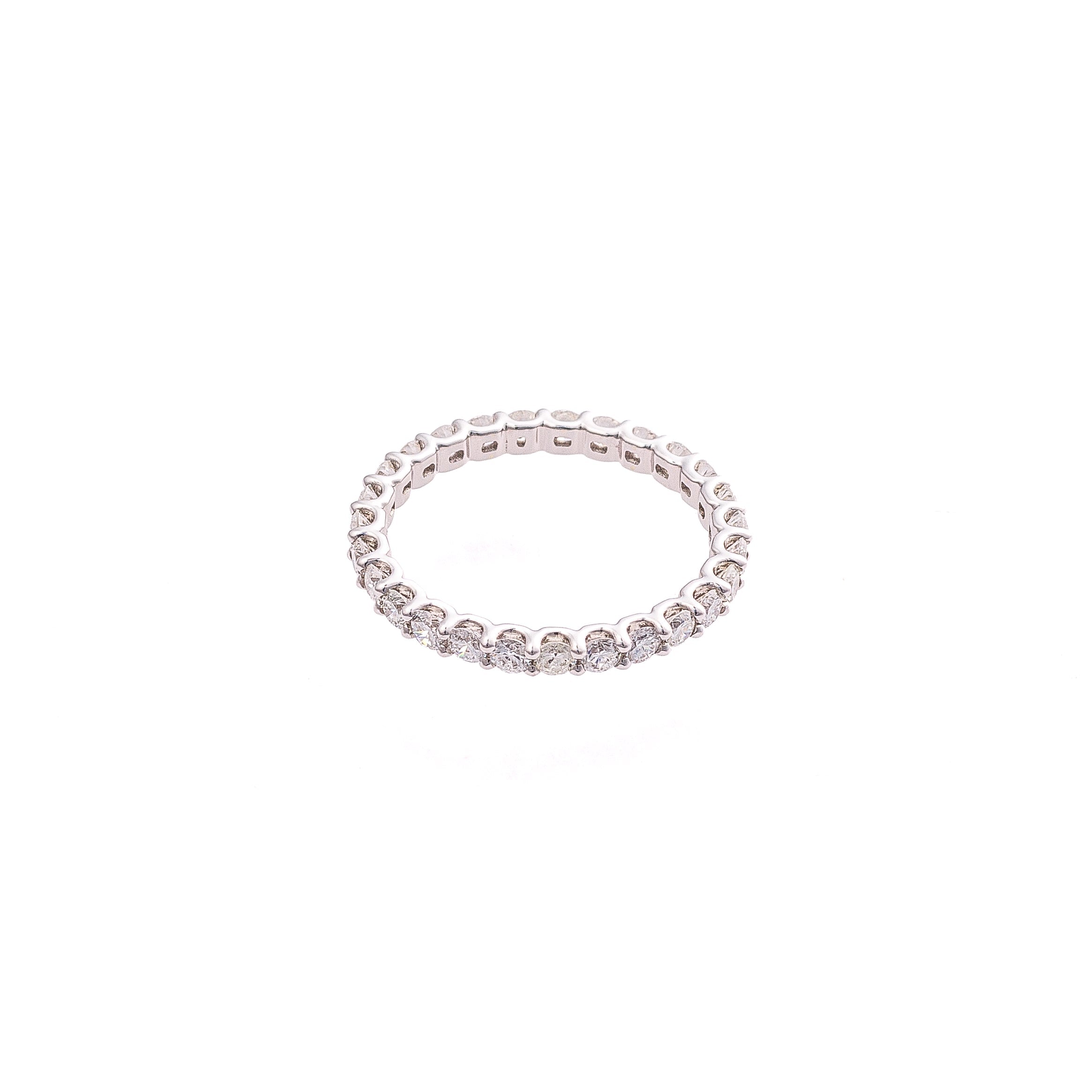 The Round U-Setting Eternity Band 1.09ct is a radiant and timeless wedding or anniversary ring, meticulously crafted in 14kt white gold. This exquisite band features a continuous circle of round brilliant-cut diamonds, totaling 1.09 carats, each set in a distinctive U-shaped prong setting that enhances light capture for maximum sparkle. The diamonds, graded G-H in color and VS in clarity, offer exceptional brilliance and fire, creating a seamless band of light that symbolizes everlasting love. Ideal for stacking with an engagement ring or wearing as a standalone piece, this band combines elegance and durability. Handcrafted for a comfortable fit, it is available in standard ring sizes with options for customization to ensure a perfect, personalized fit.